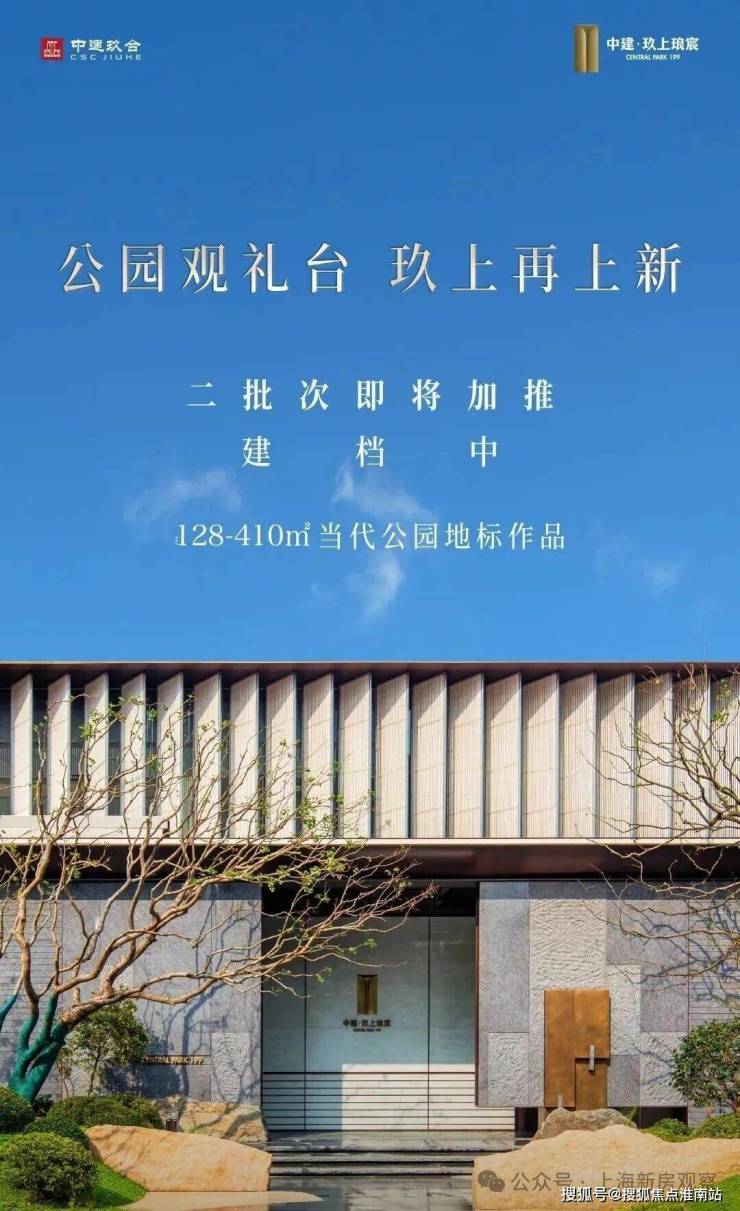 最新消息!大宁公园对面,1/20号线地铁口,中建玖合静安大宁项目案名为【中建玖上琅宸】少量建面约128-410㎡当代公园地标作品!均价14.68万/㎡,总价1436万起!280㎡美学样板间开放,公园豪宅迎来顶藏之作!还有折扣优惠惊喜+5万车位劵!售楼处线上火热预约中!
