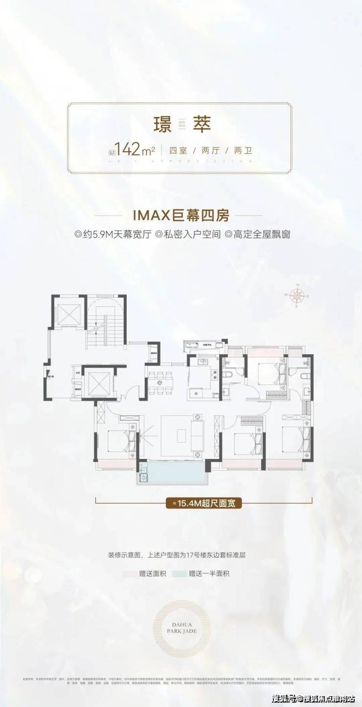 真正一步到位的改善型4房产品,大横厅的设计,四开间朝南+大横厅,约15.4米的南向面宽堪比别墅。
