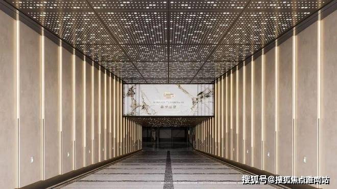 香槟金色的艺术线条在视线尽头舒展,如同为每位归家业主铺就的隐形红毯。