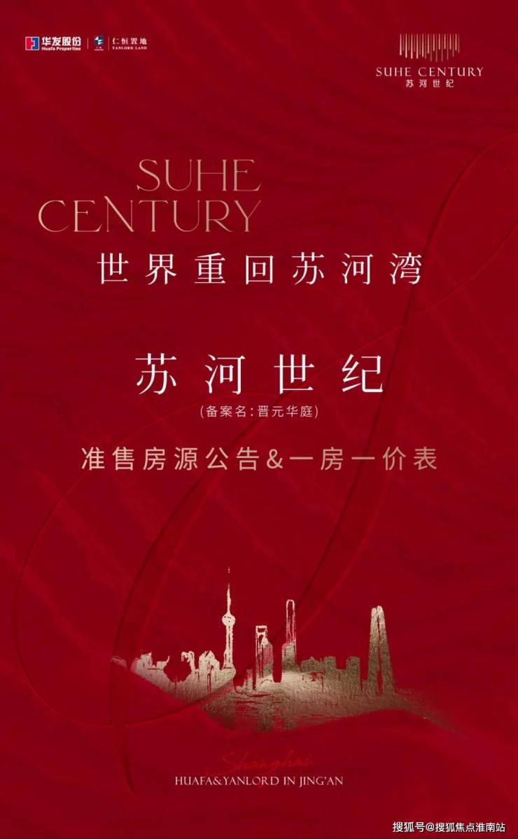 最新消息,一房一价表发布!静安内环「华发仁恒苏河世纪」二期明天认购!推出建面约102-498㎡三房到五房,最后44套!