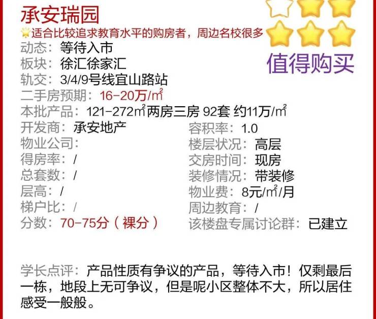 最新消息,徐汇内环「承安瑞园」等待入市!仅剩最后一栋121-272㎡两房三房,共计约92套,均价约11万/㎡!