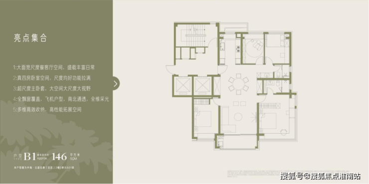 4. 双王牌户型 精准匹配改善需求:本次加推的104㎡千万级绝版三房与146㎡真四房,直击改善家庭痛点。104㎡三房以千万级总价门槛,成为入主核心商务区的稀缺机会;146㎡真四房以三开间朝南的奢阔客厅尺度,碾压同面积段竞品,适配多孩家庭或三代同堂需求。