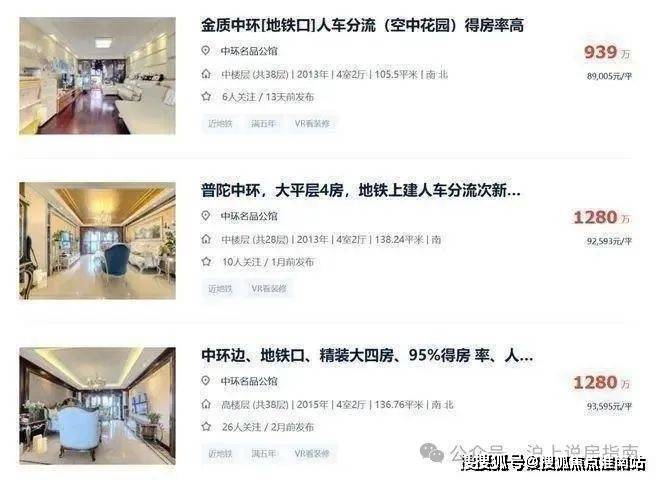 从贝壳公示的二手房数据来看,中环名品公馆自身小区内的二手房,百平三房挂牌价格已经接近9万/㎡,部分约136㎡户型的挂牌价甚至已经高达9.35万/㎡!