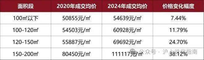 据克而瑞统计,自2020年至今,上海新房面积越大,影响成交价格变化幅度越大,最明显的就是建面约150-200㎡之间的大户型。
