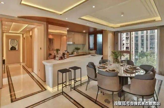 中环名品公馆售楼处电话☎:400-9659-259(预约热线)✔✔✔厨房做了U字型敞开式厨房,与餐厅无缝对接,提高室内空间及烹饪用餐的家庭氛围。