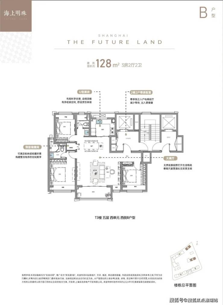 2、建面约128㎡大三房:大横厅设计,重构社交生活主场
