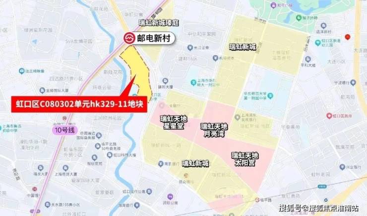 地块除了紧邻瑞虹的商业,南侧是新宏星小学,西南侧是招商云玺。