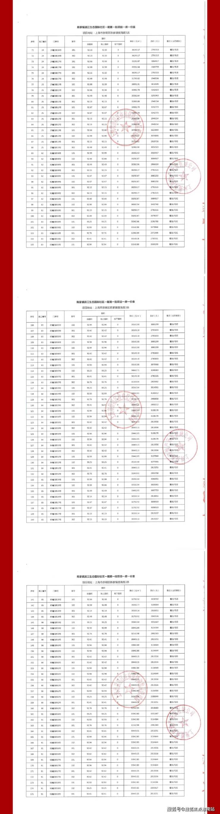 一房一价表公示:
