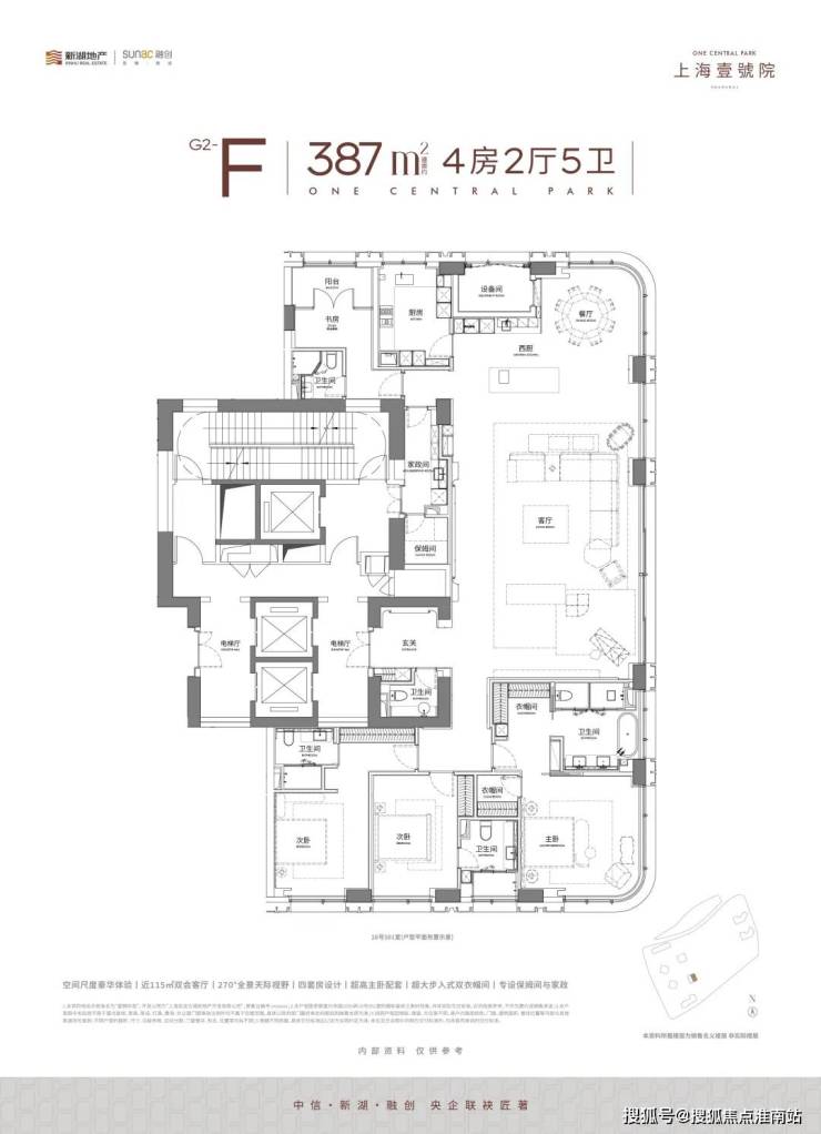 此外,全系采用两梯两户设计,电梯为对开门,电梯厅空间完全私享!在户型设计上,其最大约15m南向三面宽、5大弧形全景舱、中西厨设计等,通过通透格局与开阔视角,将私密性与全景视觉体验完美结合,以创新形态重塑高端住宅的空间美学标杆!在豪宅产品力打造这件事上,上海壹号院可谓是不断突破创新;