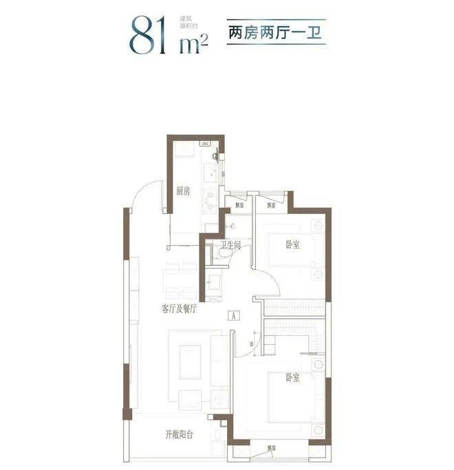 户型特点:小面积,低总价;2房朝南大面宽,舒适生活感受;卧室飘窗设计,释放更多公共空间。