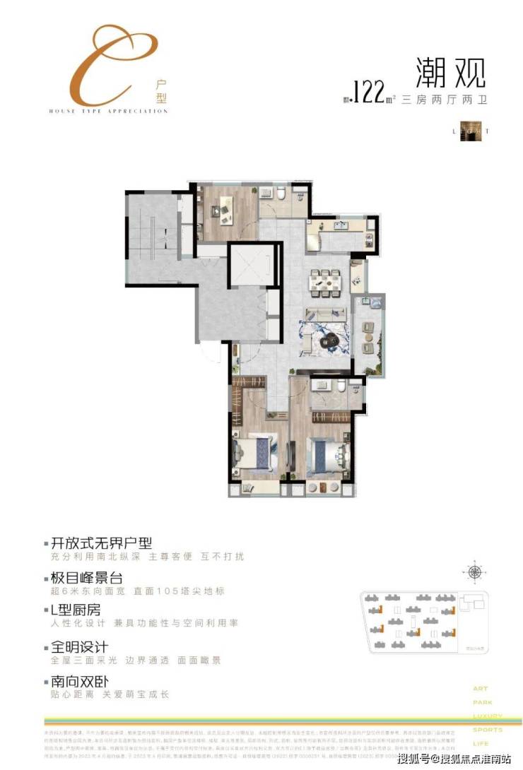 项目约100㎡3房2卫的户型把实用性做到了极致,总价虽低,但能满足业主从二人世界到二胎生活的全生命周期需求。