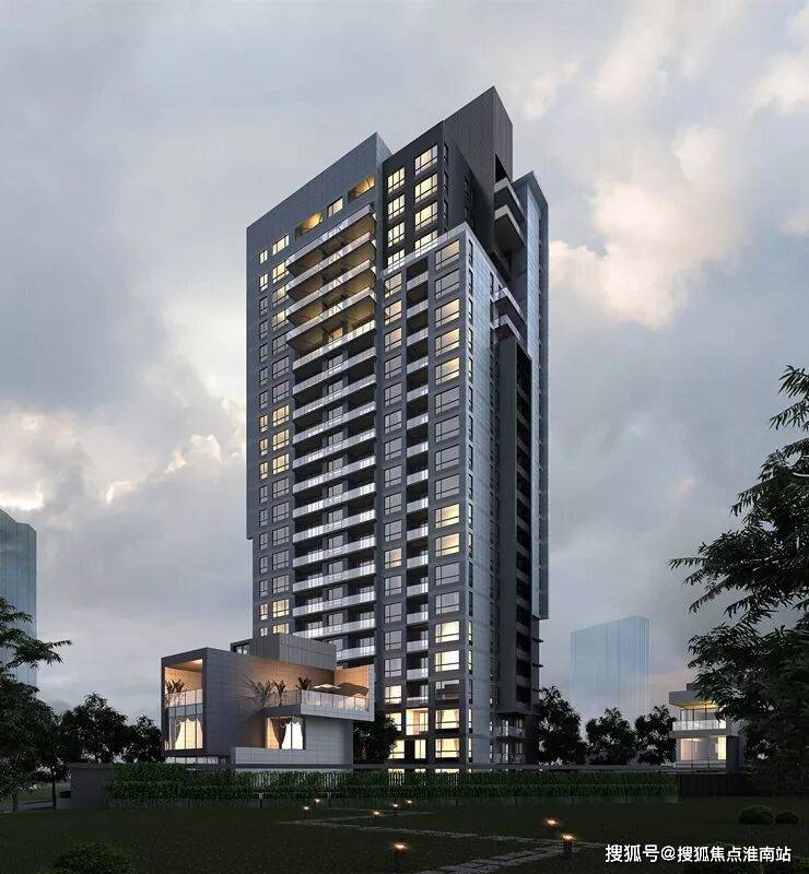 项目的体量非常小,可售只有1栋楼,还有2栋别墅是开发商自持,商业约500多㎡,高层总高23层,20层以上为一梯两户,20楼以下为一梯一户和一梯三户。