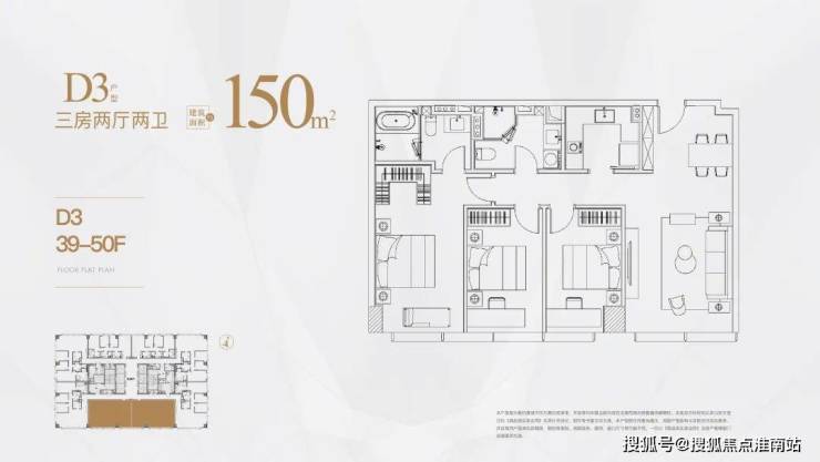 高区为39-50层,户型分别是 125㎡,150㎡,180㎡。