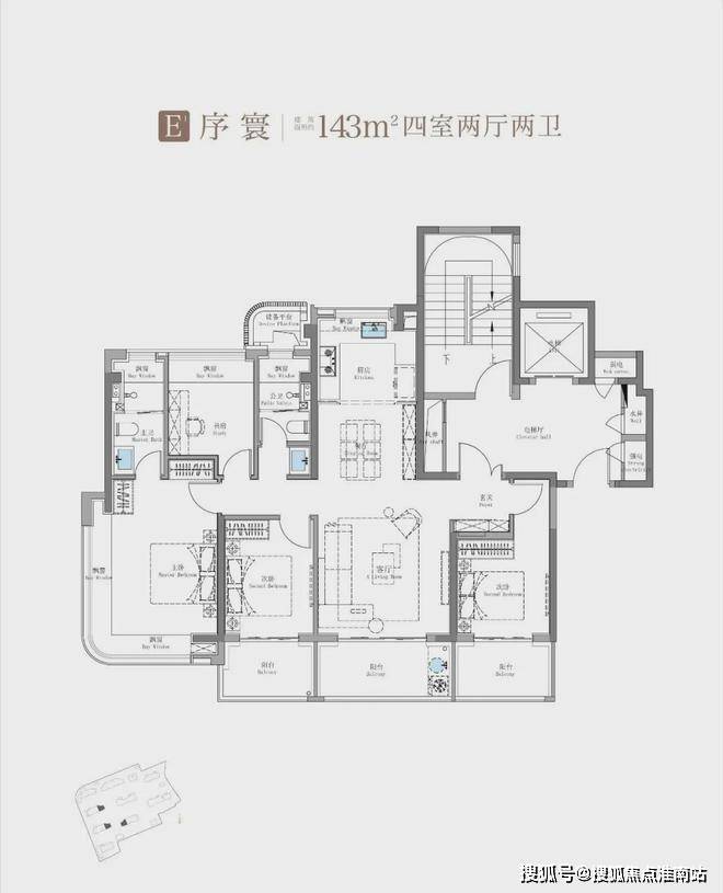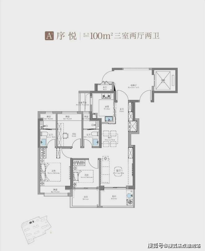 除了建面约100㎡3房外,这个建面约114㎡产品也是主打: