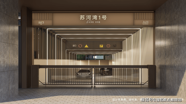 项目车库升级为玻璃天幕顶及金属、灯带装饰。