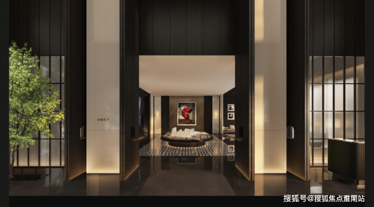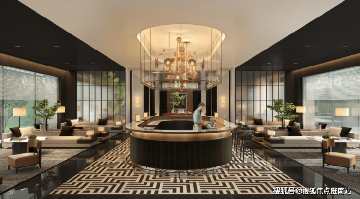 映象系以 高级“黑金美学”风格,贯穿围墙、大堂、地库、电梯厅、户外景观的设计中,以经典与艺术的强烈对撞,营造出尊贵、高级的空间序列。