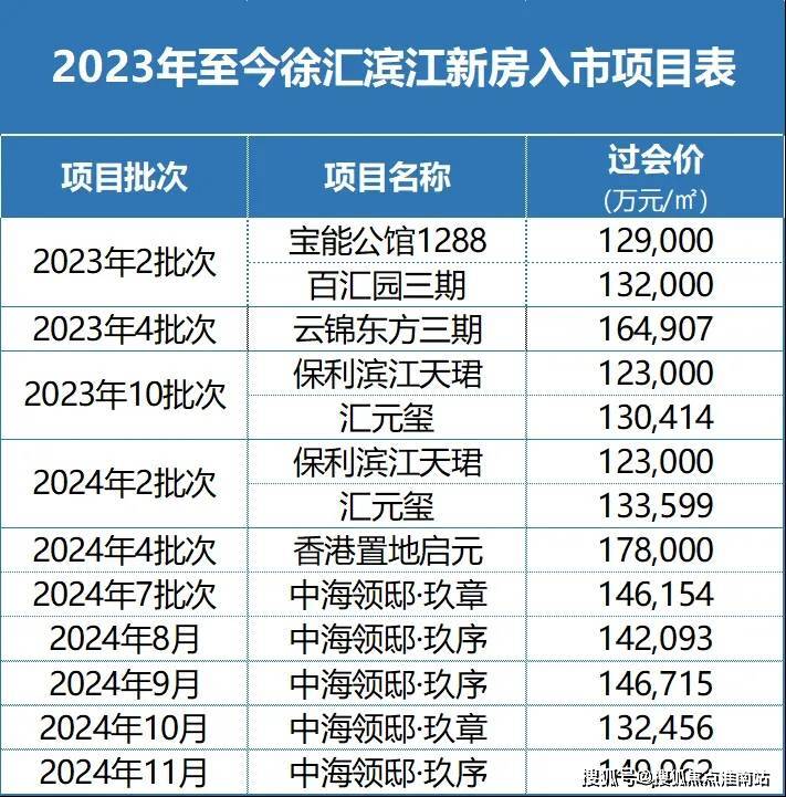 徐汇滨江新房表,信息搜集时间截止到2025.2.15