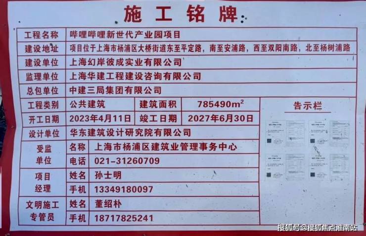 B站新世代产业园项目施工铭牌示意图,图源网络