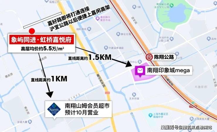 南侧约800米山姆会员店(在建);1.5公里南翔印象城Mega;