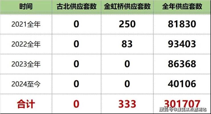 自2021年至今,近4年时间,在总供应301707套房源的情况下,古北完全0供应!根本没给任何人上车的机会!