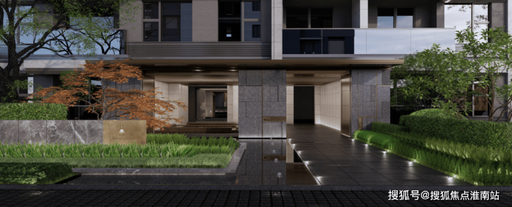 外立面大面积 涂料+部分铝板石材。