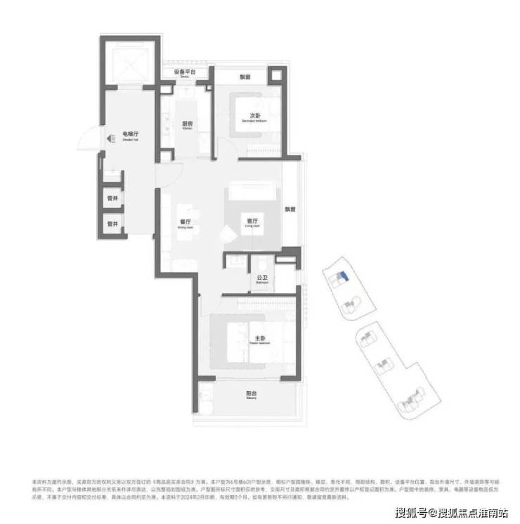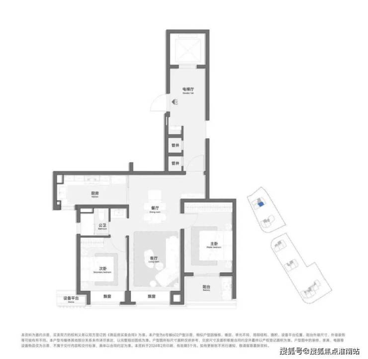 只有一个朝南的开间,客厅朝东,设有一个相当大的飘窗,但没有阳台,导致晾晒衣物非常不便,都需要去主卧。主卫进行了干湿分离。