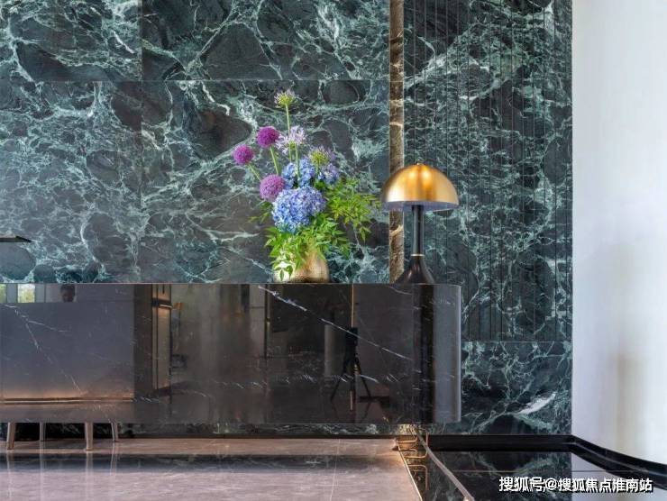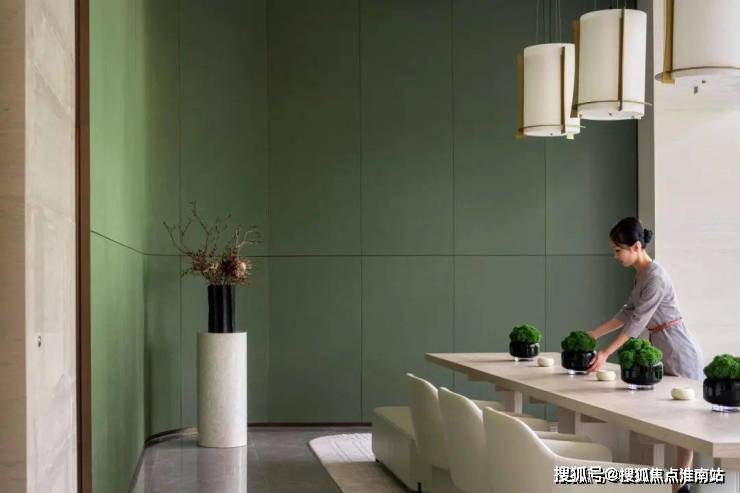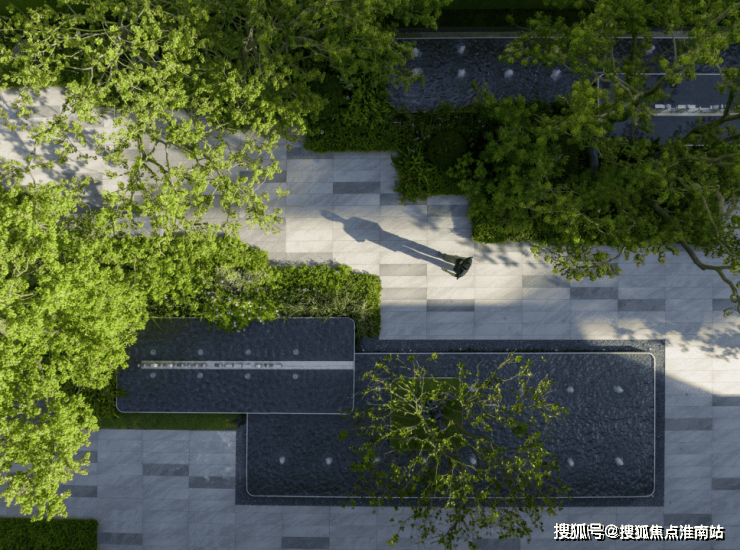 进入社区后, 实景示范区更是一眼惊艳。社区内部景观通过大面叠级水景为中心,搭配普拉达绿大理石和浪淘沙石材,奠定整体空间的高雅基调。
