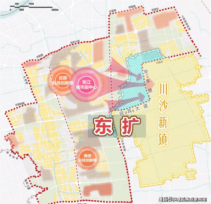 “川沙2035整体规划”中,川沙发展目标为:“形成以国际交往、旅游度假、历史文化及生态休闲为主导的浦东中部地区活力高地。”这恰好川沙与张江科学城在向东拓、国际旅游度假区在向东扩、东方枢纽 在建三大动作遥相呼应。