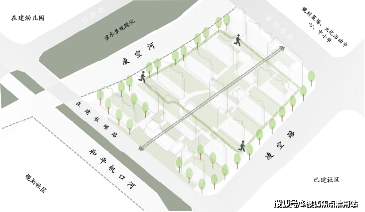 社区内部根据中轴景观结构,形成以交流会客、儿童活动、休闲放松、户外运动等在内的 “一园十境”特色场景景观布局,雅致、现代、自然简约,并以500M的健康跑道将其衔接,满足居者多元的生活需求,呈现更松弛惬意的生活方式。