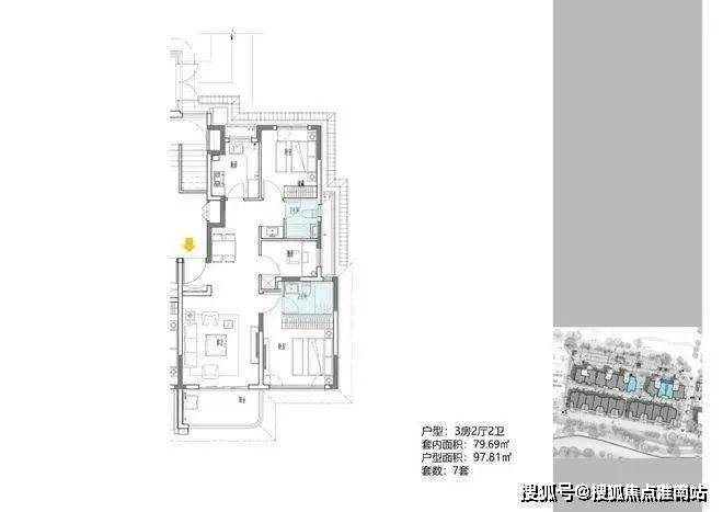 2地块容积率2.94,只有一栋小高层,共67套房源,产品建面约108-148㎡.