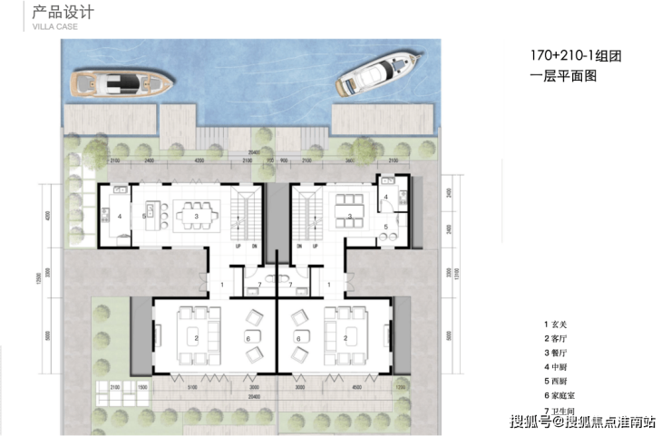 项目从此前曝光的设计方案就可以看出亮点,每一排别墅前都有一条渠道,引入水系,可以停游艇。