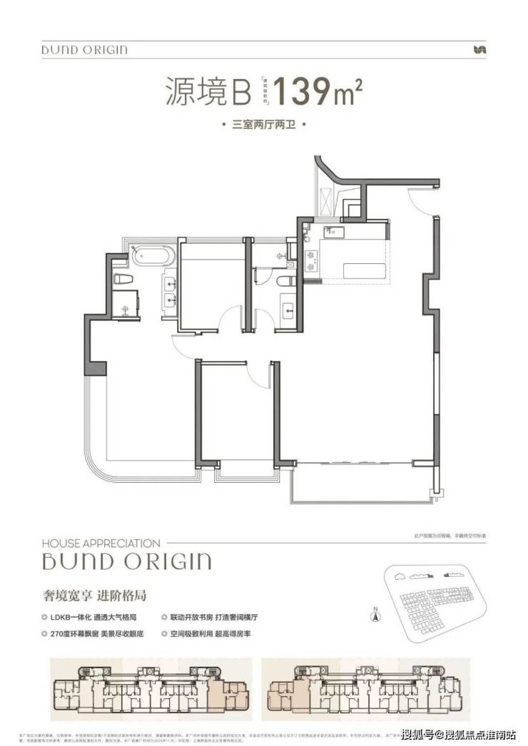这一户型打造:客餐厅一体化+大方厅+全卧共四飘窗+主卧套房设计。