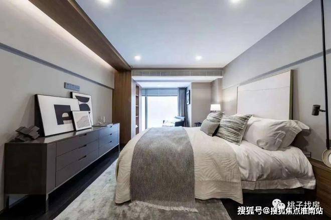 私密场域依旧保持静谧,黑白色基础上搭配了更多的色彩,例如深棕、浅紫等,艺术品的衬托深邃迷人,热络了家的氛围。