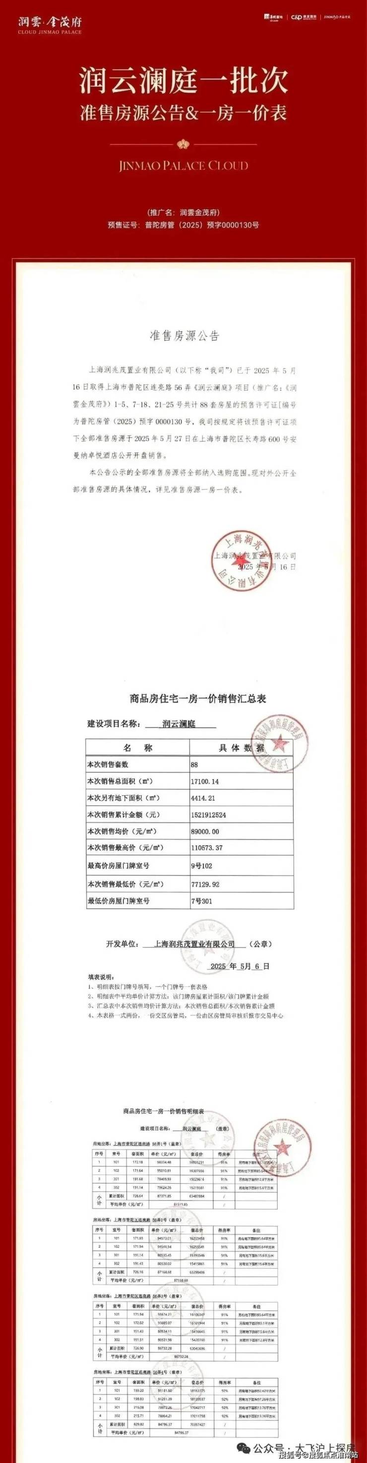 最新消息!上海城央1.29超低容积率低密纯墅区;浦西市区数年难遇的塔尖级低密改善作品「润雲金茂府」建面约170-217㎡精装科技叠墅;配置“府系3.0”科技系统 石材+金属等外立面,设会所;首期备案均价89000元/㎡;二批次预计6月底加推上市!