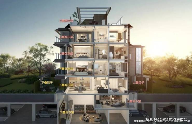 据了解,项目上下叠私梯入户,客厅层层高3.3米,卧室层层高3.15米,地下室储藏空间设置采光天窗,上叠设置屋顶露台,整体品质非常高。