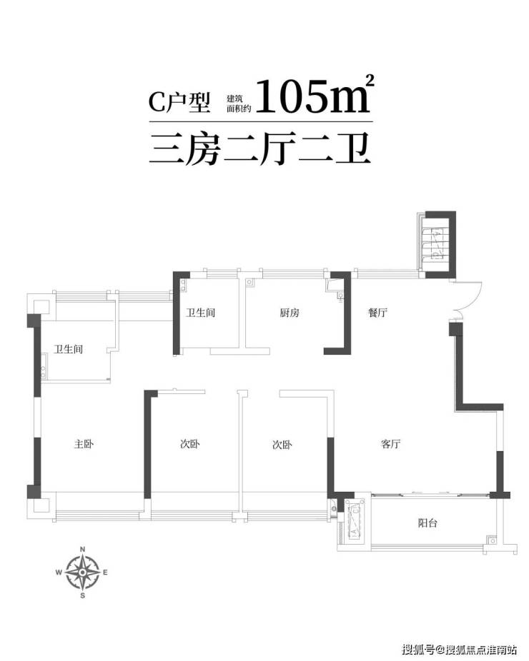 建筑面积约105㎡宽厅三房两卫,四开间朝南,舒适栖居理想