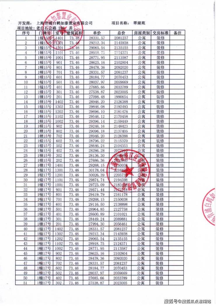 一房一价表及认购规则