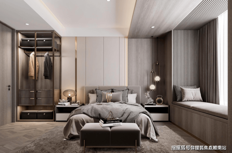 双套房设计,主卧带卫生间+衣帽间,次卧带衣帽间+飘窗,让两代家庭都能拥有自己的私密空间。