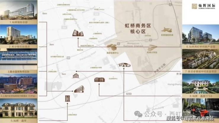 约3公里辐射文旅古镇蟠龙天地、万科天空广场、夏都小镇、西虹桥商务区。约7公里触达七宝商圈、奥莱商圈及虹桥枢纽经济中心。