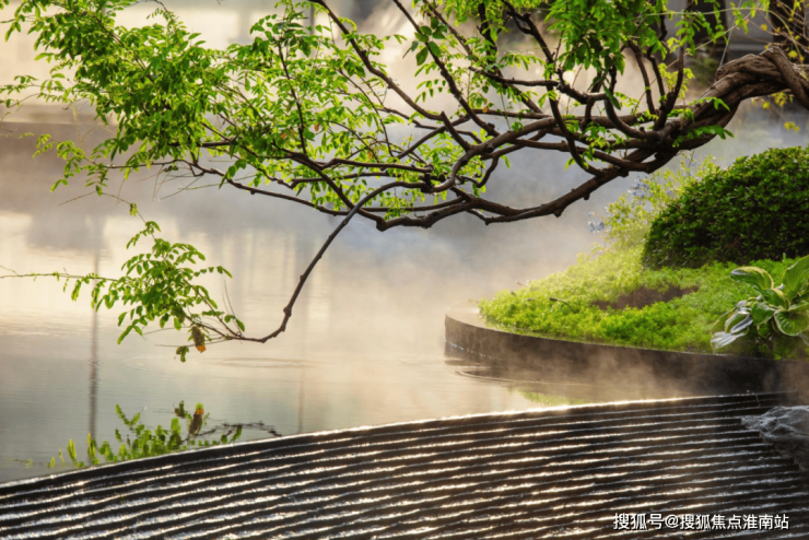 独家君参观途中,忽逢骤雨,本以为天公不作美,却见眼前浮光池院,在朦胧烟雨中更显诗意淋漓,成为了“天青色等烟雨”的最佳注脚: