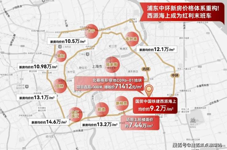 2025年3月,北蔡楔形绿地C09b-01地块以7.14万/㎡楼板价成交,溢价率高达40%,业内保守预估未来新房售价将突破11万+/㎡。而直线距离仅约300米外的西派海上,联动价仍锁定9.2万/㎡,楼板价价差高达1.5万/㎡!以建面约105㎡户型为例,当前总价约900万级,未来同地段购房成本或飙升至近1200万,相当于开发商“倒贴”首付!(数据来源:克而瑞CRIC)
