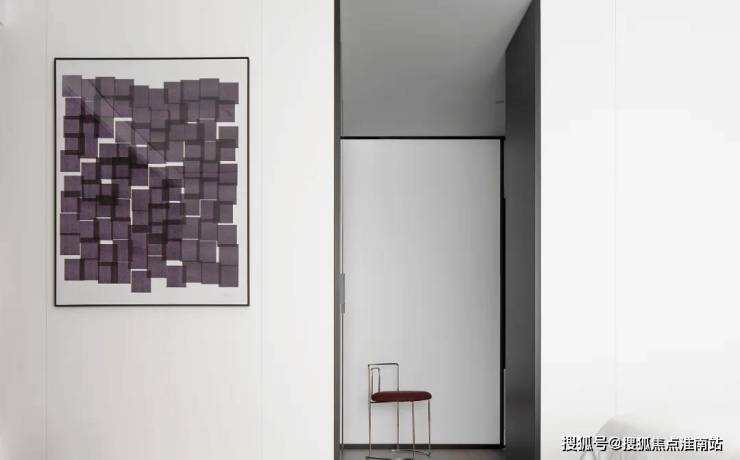 私密场域依旧保持静谧,黑白色基础上搭配了更多的色彩,例如深棕、浅紫等,艺术品的衬托深邃迷人,热络了家的氛围。