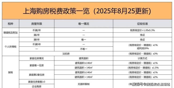 三、上海2025年8月最新购房税费政策