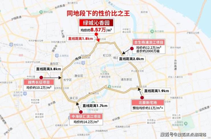 首先,项目距离内环直线约1.8km,而全市同样地段维度的新房,每一个都是千万以上的豪宅。
