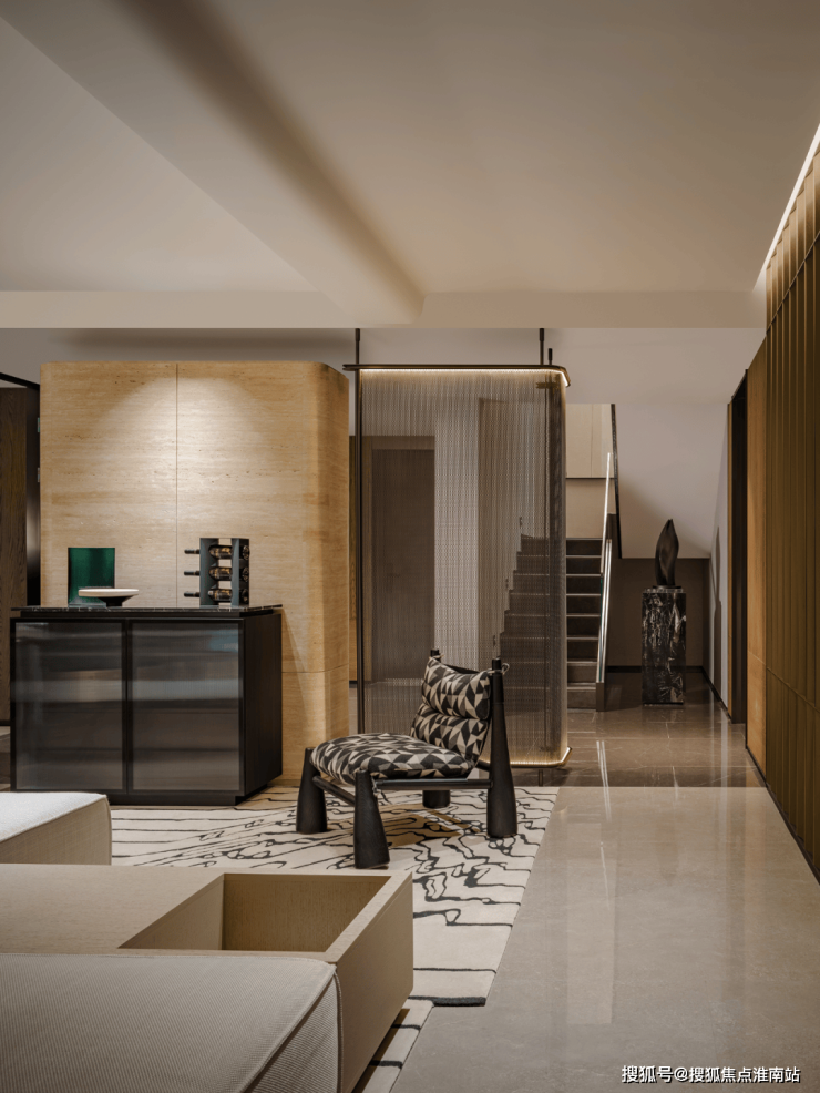 客厅,西厨餐厅,中厨吧台与圆桌餐厅都在四层的空间,如何让每个区域更加完整,且动线合理,设计师重新调整了入口方向,需要多走几步路,绕一个弯后才能进入。但这样的设计恰恰让人可以放慢脚步,调整工作和生活的节奏,增加了归家的仪式感。杭州中海月陇云岚售楼处电话☎:400-891-9910【开发商售楼处预约看房热线】(一对一热情vip服务)