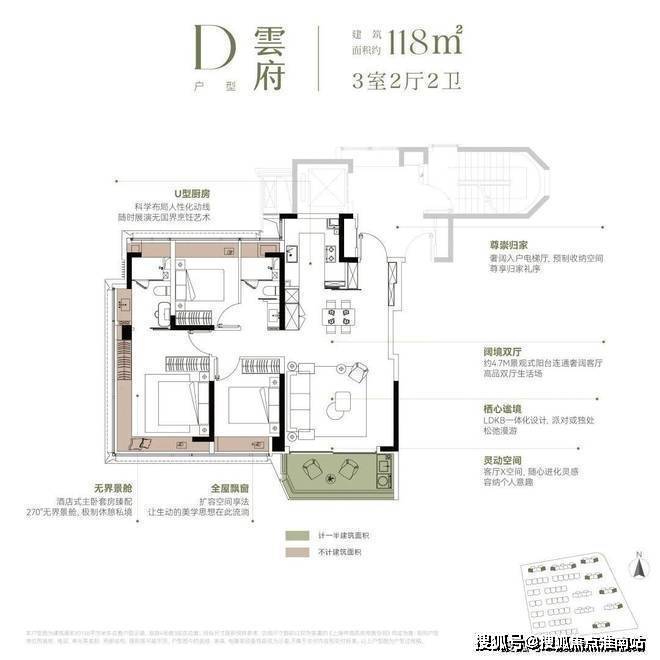 该地块采用了高层和叠墅高低配设计,高层主力户型为115~120㎡区间的3房以及部分140㎡左右的4房产品。