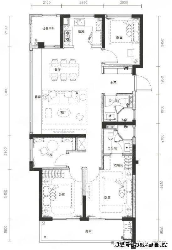 若三代同堂或二胎家庭,112㎡四房边套会是一个更经济实惠的选择。整体布局是在98㎡基础上增加了一个北向次卧,在保证各自有独立居住空间的同时还能保留书房这个“现代刚需”。由内到外都给出了绝对的诚意。