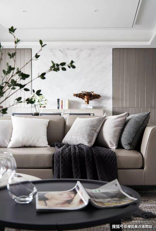 床头细节用了户型的设计,这样即让背景有了一个围合的感觉,弧形向上的高度让后面的硬包处多了一个灯带的位置,丰富了一些层次。