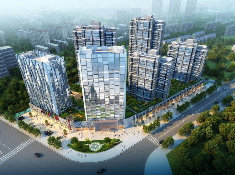 项目规划设计沿用并汲取北上广深高端居住小区绿色低碳和宜居宜业的规划理念,住宅及商业建筑采用组团式点式布局,充分挖掘大别山青年城项目资源的复合效应,使商业、商务、居住有机融合,形成聚合效应。