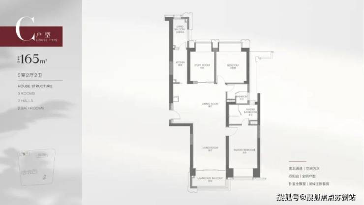 ②:有南向阳台,符合生活习惯,可以是晾晒区,也可以是业主侍弄花草、休闲品茶的角落。